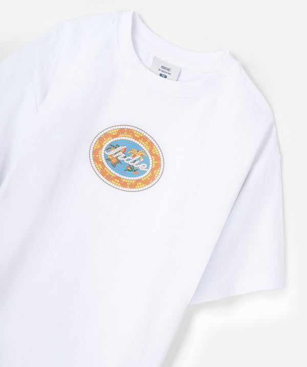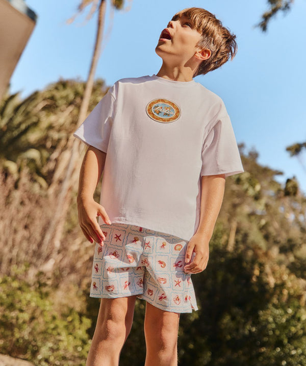 • Step into resort mode with The Resort Tee – featuring a puff mosaic-inspired graphic and bold Indie branding, this soft cotton tee brings a fresh Mediterranean feel to your little legend’s summer wardrobe.